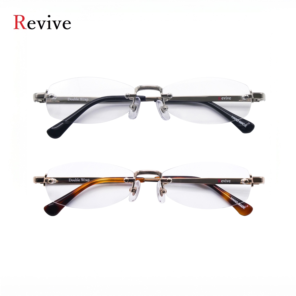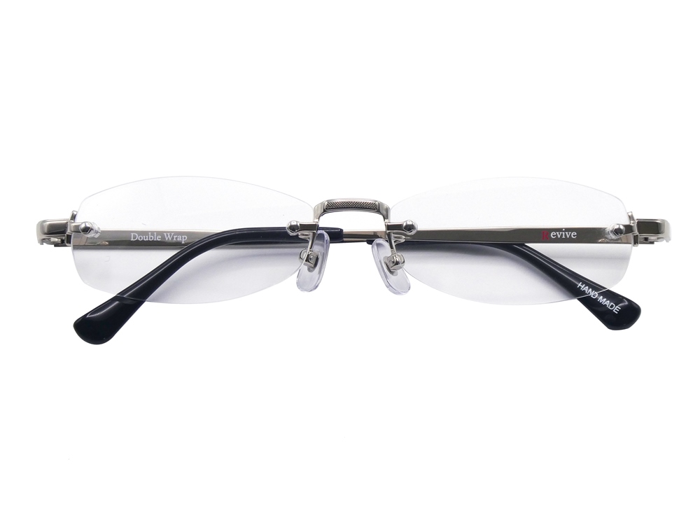 独特な存在感を放つ「Revive(リヴァイブ) Double Wrap(ダブルラップ)」。チタン素材ならではの上品な輝きを持つシルバーは特にお客様からの満足度も高く人気カラーです。シルバーとゴールドの2色展開となります。存在感のあるリムレスデザインでありながら、顔まわりをすっきりと見せ軽やかな掛け心地を実現。シンプルでありつつ印象に残るデザインは日常使いはもちろんコーディネートの主役としてもお楽しみいただけます。